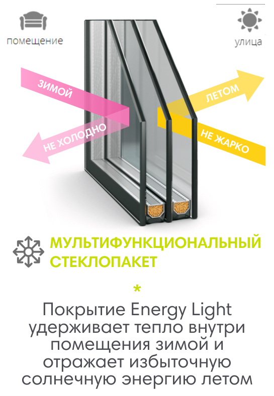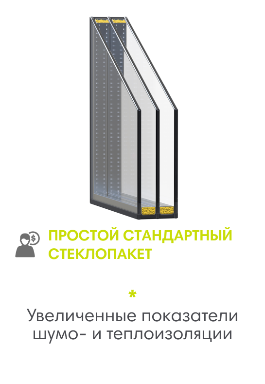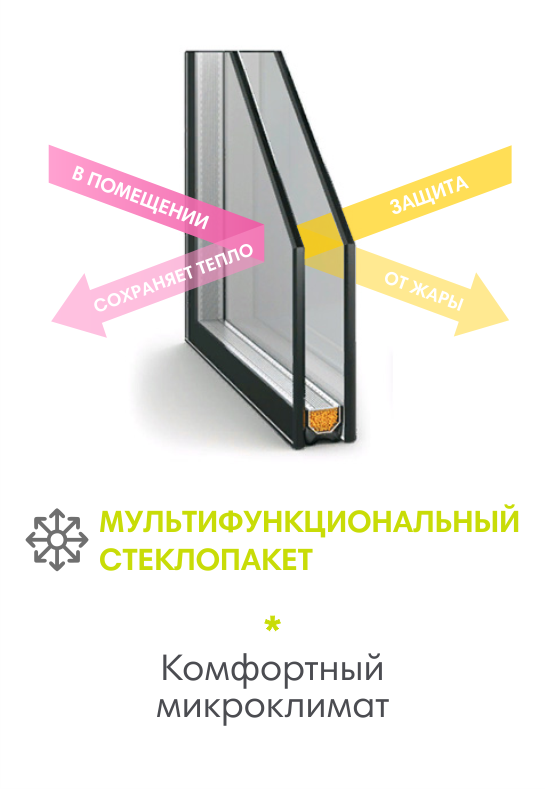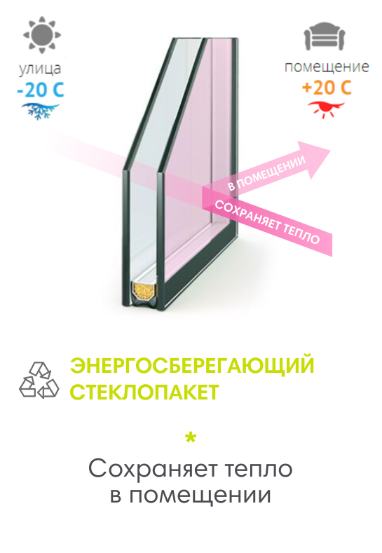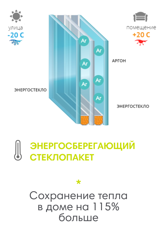 Двухкамерные стеклопакеты — это конструкция из трёх высококачественных стекол с серебряным напылением. Заключенные в дистанционную рамку такие стеклопакеты препятствуют утечке тепла и заметно сокращают ваши расходы на отопление.